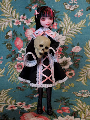 黒いドレス服には少々飽きて来たし(注:ドール用に作るのが)、黒レース等の装飾もいよいよ底を突きそうなので、ゴスでも仮装でもない、単なるストリート系と言うか病み可愛サブカルチャー系の服で、momoko DOLLにハロウィーンを祝って貰おうと思い立ちました。