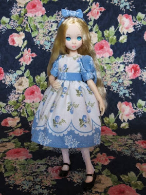 マリン・スタイルで発売された青い瞳のrurukoには、購入した時から不思議の国のアリスっぽい青いドレスを着せてみたいと思っていました。